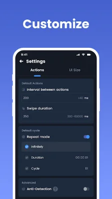 One of the key features of Auto Clicker is the ability to adjust the size of the cursor. This allows for precise clicking and swiping, making it ideal for tasks that require a high level of accuracy. The app also offers the option to set parameters for each click, such as delay, touch time, and number of repetitions. This level of customization ensures that the app can be tailored to your specific needs.