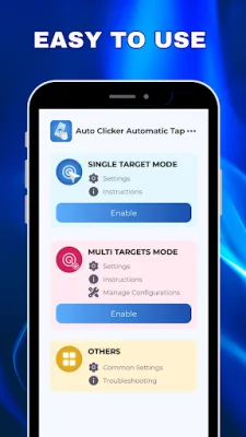 Auto Clicker is a mobile application that allows users to automate repetitive touch actions on their device. It offers a variety of features to make this process easier and more efficient. These include a single target mode for simple, repetitive actions, and a multi-target mode for more complex sequences. Users can also save and manage multiple custom configurations for their specific needs. The interface is user-friendly and offers detailed guides for customization of tap speed and delay between taps. Additionally, the app provides quick access to common settings and troubleshooting tools. This application is perfect for gamers who want to auto-farm or auto-tap in their games. It is also useful for users who want to automate repetitive touch actions in other apps, saving them time and effort. With Auto Clicker, users can boost their phone usage efficiency and simplify their tasks. It is important to note that the app requires Accessibility Service Permission to function. This is necessary for the app to simulate touch actions on the screen, such as single taps or multi-taps, based on user-configured settings. However, the app does not collect or share any personal data. The Accessibility Service is only activated when actively permitted by the user, and it is solely used to provide the main functions of the application. In conclusion, Auto Clicker is a useful tool for automating touch actions on mobile devices. It offers a range of features to make this process easier and more efficient, and it is perfect for gamers and users looking to save time and effort. The app is safe to use and does not collect any personal data. Download Auto Clicker now to simplify your tasks and boost your phone usage efficiency!