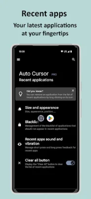Auto Cursor is an application that allows you to use your cursor to easily navigate and perform actions on your device. With this app, you can reach every side of your screen and perform various actions such as clicking, long clicking, and dragging. You can also customize the triggers, tracker, and cursor to your liking by choosing their size, color, and effects. There are a variety of actions available for you to choose from, including back button, home, recent apps, open notification, power off dialog, lock screen, and more. You can also toggle various settings such as Bluetooth, WiFi, GPS, and sound, as well as perform media actions like play, pause, and adjust volume. Additionally, you can launch applications and shortcuts with this app. Auto Cursor is fully customizable, allowing you to swipe on the left, right, or bottom edge of your screen to show the cursor and perform actions. You can also customize the triggers by choosing their place, size, and colors, and distinguish between click and long click actions. The Pro version of the app offers even more features, such as the ability to perform long click and drag actions, add long click actions to triggers, and access to more actions and menus. Privacy is a top priority for the developers of Auto Cursor, which is why the app does not require any internet authorization and does not send any data over the internet without your knowledge. The app also requires you to enable its accessibility service before use, but this is only to enable its functionality. The app will never collect or send any data across the network. For certain devices, such as HUAWEI and XIAOMI, there may be additional steps required to use Auto Cursor. These steps are outlined in the app description and can be easily followed to ensure the app works properly on your device. Auto Cursor is currently available in multiple languages, including English, French, Italian, Russian, Ukrainian, and Chinese. There is also an incomplete translation available in German, Spanish, Dutch, Polish, and Portuguese. If you would like to help translate the app into your native language or report an error in an ongoing translation, you can contact the developers at [email protected]. You can also change the default language of the app in the "About / Translation" menu. If you have any questions or issues with the app, there is a detailed FAQ available on the app's website. You can also report any issues on the app's GitHub page. The developers encourage original and SEO-oriented issue reports to help improve the app. Overall, Auto Cursor is a useful and customizable tool for navigating and performing actions on your device with ease.