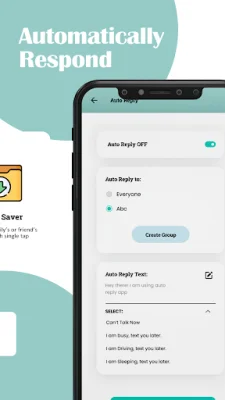 AutoReply is a convenient and efficient app that allows you to instantly respond to messages without having to manually type out a reply. Unlike other chatbot apps, our Auto Reply Chat Bot is specifically designed for WhatsApp and offers a variety of features to help you save time and stay connected with your friends, family, and customers. With our app, you can automate your responses and schedule specific times for when you want the auto reply feature to be turned on and off. This is especially useful for when you are busy or out of the office and want to send an automated message to let others know.