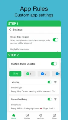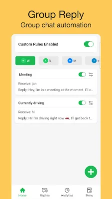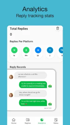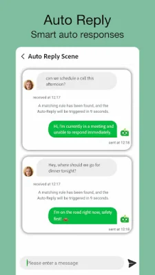 Auto Reply Master is a convenient and intelligent tool that automatically responds to messages when you're busy. It allows you to stay connected across multiple messaging platforms, making it perfect for work, travel, or personal use. With just one tap, you can activate the auto-reply feature and set it up easily. The tool also has advanced features such as smart detection, custom templates, and support for both group and private chats. One of the key benefits of Auto Reply Master is its compatibility with popular messaging applications. It works seamlessly with various chat platforms, social messaging apps, and communication tools. This makes it a versatile tool that can be used for different purposes, such as professional communication during meetings or work hours, safe responses while driving or in transit, and automatic replies during rest periods or vacations. Privacy and security are also top priorities for Auto Reply Master. The tool ensures that no data is uploaded and everything stays on your device. It only has access to notifications and not chat history, ensuring maximum privacy. Additionally, it operates completely offline, making it a secure and private way to handle messages. The user-friendly interface design and regular updates and improvements make Auto Reply Master a reliable and stable tool. It is also free to use with no hidden charges, making it accessible to everyone. Experience the convenience of smart and customizable auto-replies across your favorite communication apps, all while maintaining full privacy and control. It is important to note that Auto Reply Master is an independent tool and is not affiliated with, endorsed by, or sponsored by any third-party messaging application or service provider. This ensures that the tool remains unbiased and focused on providing the best auto-reply experience for its users.