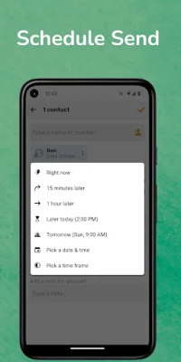 The app also ensures user privacy by not saving SMS or contact list data on a server. When the app is deleted, all data is deleted as well. Additionally, the app uses Android Accessibility Services to automate sending scheduled messages, but this permission is only used for this specific purpose and no user data is collected or shared through it.