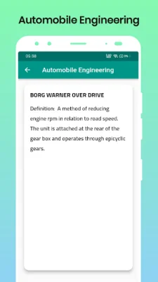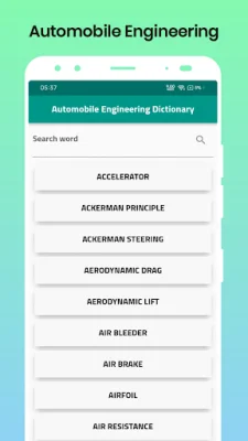 This application is designed to provide a comprehensive and organized solution for automobile engineering terminology. It offers a user-friendly interface with two main features: an alphabetical listing and a search tool. These features make it easy for users to quickly find and review specific terms and definitions related to automobile engineering.