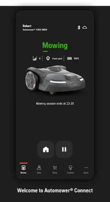 The Status and Control application allows users to monitor and manage their lawn mower from their mobile device. With this app, users can receive real-time updates on the current status of their mower, including push notifications if the mower is stopped or taken outside of its designated area. Additionally, users can send commands to the mower such as Start, Pause, and Park.
