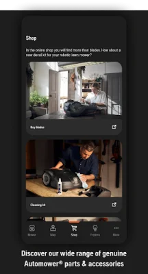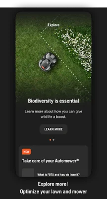 One of the key features of this application is the ability to configure and install the mower directly from the user's mobile device. This includes access to the mower's complete menu system, allowing users to view and change settings such as timers and cutting height. The high resolution and color display on the mobile device enhances the user's interaction with the mower, making it easier to customize and control.