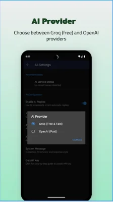 AutoReply is a free application that allows users to automatically respond to messages on WhatsApp and Facebook Messenger. It is perfect for busy professionals, students, and anyone who needs 24/7 automatic responses. The app uses AI technology to provide intelligent and personalized responses, making it a convenient and efficient tool for communication. One of the main reasons to choose AutoReply is that it is completely free and does not have any ads or premium features. It also uses AI-powered technology, similar to ChatGPT, to provide smart replies. The app works on all Android devices and does not require root access. Privacy is also a top priority, as the app does not collect any data and all messages stay local. Additionally, it can work offline, allowing users to set custom replies without an internet connection. AutoReply has several key features that make it stand out. These include smart AI auto reply, custom auto replies, WhatsApp auto reply, group chat support, message backup, reply frequency control, and 100% privacy. These features make it a versatile tool for various situations, such as business meetings, classes or exams, travel, sleep time, and customer service automation. Setting up AutoReply is quick and easy. Users simply need to install the app, grant notification permission, enable the auto reply service, and set custom messages or AI replies. The app also offers AI features, such as Groq and OpenAI providers, custom AI prompts, intelligent responses, and fallback to custom messages. AutoReply supports two messaging platforms: WhatsApp and Facebook Messenger. It is an open-source app that is still under development, and contributions are welcome. The app is not affiliated with WhatsApp, Facebook, or any other messaging platform, making it a unique and independent tool for communication. For more information, users can visit the app's GitHub page, privacy policy, or contact the developer via email.