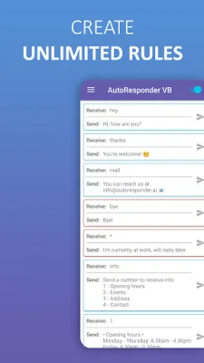This application is a powerful tool that allows users to automate their responses to Viber messages. It has many features and advantages that make it stand out from other similar applications. One of its main features is the ability to automatically reply to Viber messages, which can be individually customized. This means that users can set specific responses for different contacts or groups, making their replies more personal and relevant. Additionally, the app includes various automation tools that can help users manage their messages more efficiently.