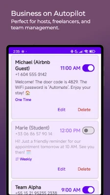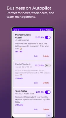 In summary, AutoSMS is a must-have app for anyone looking to simplify their life and automate their communication. With its user-friendly interface, privacy protection, and useful features, it's the perfect tool for sending timely and important messages without any hassle. Give it a try and see how it can make a difference in your daily routine.