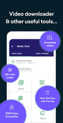Avast Secure Browser takes incognito mode to the next level by encrypting all online data, including IP address, browsing history, bookmarks, DNS queries, and more. Downloaded files are also automatically encrypted and can be accessed through the private Media Vault. Users can also feel comfortable sharing their device with others, as their private browsing data is protected by a PIN code or fingerprint.