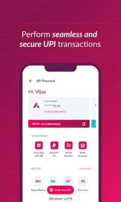 Banking transactions can be complicated, but with open by Axis Bank, they are simplified. The app offers a customizable dashboard with an explore tab that gives you easy access to your account balances and commonly used features like mutual fund investments and dues. You can also set up a 6-digit MPIN for added security when making fund transfers and transactions. The app also enables the Bhim Unified Payment Interface (UPI) for easy payments and transactions.