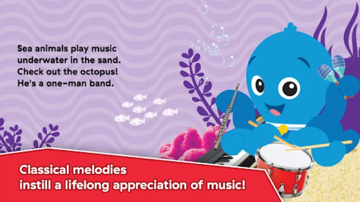 This app is designed to introduce babies and toddlers to classical music through well-known symphonies and compositions that have been adapted for young listeners. The app features works by famous composers such as Beethoven, Bach, and Mozart, as well as world music with natural and environmental elements that fit each book's theme. The app is based on the Baby Einstein learning philosophy, which focuses on engaging multiple senses, stimulating creative thinking, and building confidence. The first story, "Water, Water, Everywhere!" is available for free, and the app encourages children to explore and follow their curiosity. The app offers a variety of themes for children to explore, including science, nature, music, art, animals, and counting. Each book is fully narrated and features adorable animated animal characters to illustrate key early-learning concepts. The app also includes a word highlight feature to help children follow along as they read. Once a book is downloaded, it can be accessed anytime and anywhere without an internet connection. The interactive world within each book is colorful and engaging, with simple interactions tailored specifically for babies and toddlers. The app also has measures in place to prevent unintentional purchases. It's important to note that the app does contain in-app purchases that require spending money to unlock additional content. Playdate Digital, the publisher of the app, is committed to creating high-quality, interactive, and educational software for children. Their content is developed in partnership with trusted global brands for kids. The app can be found on the Playdate Digital website, and they can also be followed on social media platforms such as Facebook and Twitter. If users have any questions, suggestions, or comments, they can contact the company 24/7 via email.
