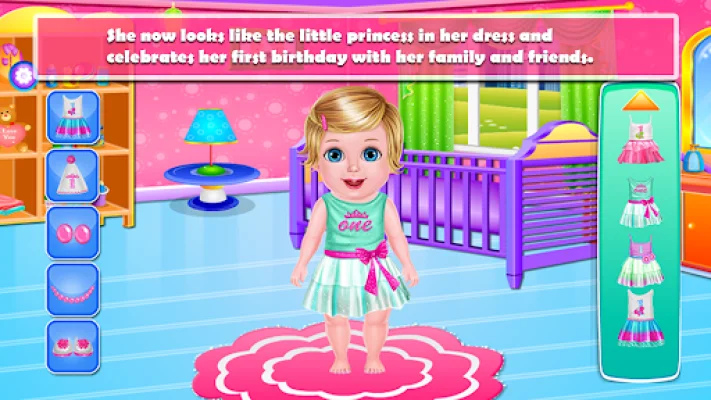 It's a special day for everyone as we celebrate our baby girl's first birthday with family, friends, and loved ones. The parents have planned a grand party with a theme, decorations, and delicious food to make it a memorable occasion. They have been preparing for this day for a month or two, carefully selecting the dress and accessories for their little princess. The game has five levels where players can choose different items to create unique ideas for the party and dress up the baby doll as a charming princess. Through this game, children can learn important life skills while having fun. The first-year birthday cake is always special and should be decorated with vibrant colors and designs. In the game, players can choose from a variety of cake bases to create their own unique cake. The parents have also selected a vibrant dress for their little princess, making it their responsibility to choose the perfect birthday robe. Decorations play a crucial role in making the party fun and memorable, and the mother has specific items in mind that players can choose from. The game also allows players to decorate the party venue with a backdrop screen, balloon arrangements, lighting, and text displays. With many options to choose from, players can create a beautiful and fun atmosphere for the birthday party. Finally, the baby girl gets dressed up in her birthday dress and accessories, looking like a little princess ready to celebrate with her family and friends. Join in on the fun and experience the joy of a first birthday party with colorful costumes, balloons, and delicious cakes. Let your kids play the game and learn important skills while having fun. Mobi fun games values your privacy and has a strict privacy policy in place. So come and explore the magic of a first birthday celebration with us!