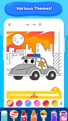 The app is not only entertaining but also educational, as it helps boost children's creativity and artistic sense. It offers a wide range of coloring themes, including animals, cars, princesses, and dinosaurs, to keep kids engaged and learning. Once a drawing is completed, children can showcase their artwork in the Gallery Tab, creating their own exhibition of beautiful paintings.