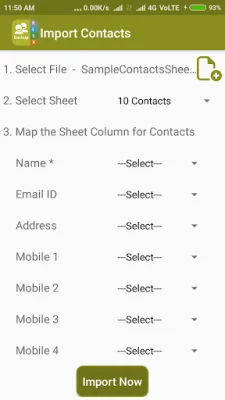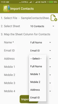 This application allows you to easily import and export contacts to and from an excel sheet. It supports the latest format of excel sheets, .xlsx, and allows you to import and export four types of contact fields: full name, mobile numbers, email addresses, and home addresses. You can also map the column headers in your excel sheet to the corresponding contact fields, eliminating the need to rearrange your sheet before importing. The app has been tested with 10,000 contacts and can handle even more, depending on your mobile device's configuration. Best of all, the app works completely offline and does not send your imported contacts to any server or external location.