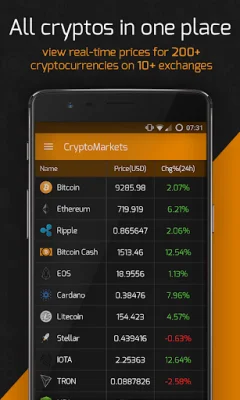 The CryptoMarkets App is a comprehensive tool for cryptocurrency enthusiasts and traders. It offers real-time price updates for over 200 cryptocurrencies from 20+ exchanges, making it easy to stay on top of the constantly changing market. Users can customize their watchlist to track their favorite coins and never miss a price move again. The app also features a powerful charting tool with support for line charts, candlestick charts, and OHLC, allowing users to analyze market trends and make informed decisions.