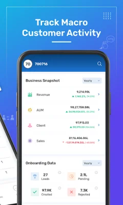 The app offers a variety of key features to help users stay informed and proactive. These include performance analytics, client insights, revenue and AUM snapshots, sales and turnover data, client acquisition and reactivation monitoring, and access to all back-office reports. The app also simplifies the eKYC process and provides a user-friendly interface for easy navigation.