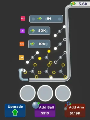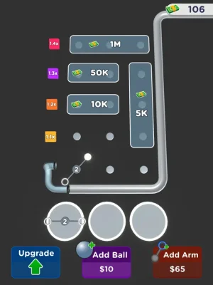 But that's not all - with just a tap, you can make your ball spin faster than ever before! This feature not only adds an extra level of excitement to your gameplay, but it also helps you earn money faster. And what can you do with that money? Merge your ball movers, of course! By merging them, you can create even more powerful arms that will take your gameplay to the next level.