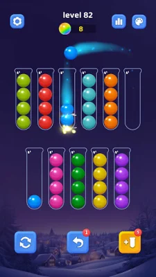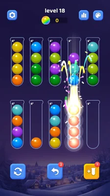 To play the game, you simply tap on a bottle to pick up the top ball and then tap on another bottle to drop it there. Only balls of the same color can stack together, and each bottle has a limited capacity. The game also offers the option to use boosters such as Undo or Extra Bottle to help you progress. The goal is to sort all the color balls into one bottle to complete the level.