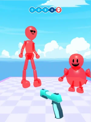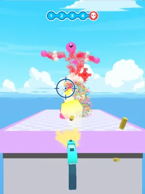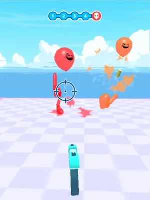 Tap to fire with the gun. The Balloon Man is your target and you must aim carefully to defeat him. But be warned, he can fly in the sky, making it a challenge to shoot him down. However, if you have good aim, you can take him down in one shot. Don't forget to keep an eye out for the missile balloon that may appear, as it can give you an advantage in defeating the Balloon Man. Are you ready to take on this exciting challenge?