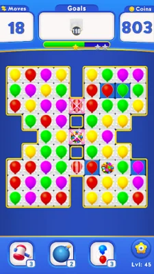 In addition to these special items, players can also use power-ups to enhance their balloon popping experience. The magic wand can destroy any single balloon, the bomb can clear a selected area, and the hand can swap balloons to create matches.