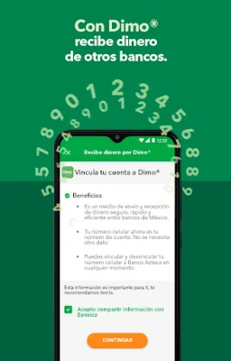 La aplicación también ofrece la posibilidad de realizar transferencias con SPEI o recibir dinero a través de Dimo®, utilizando solo el número de teléfono celular. También puedes recibir dinero de Estados Unidos de manera segura y fácil, así como comprar y vender dólares con el mejor tipo de cambio.