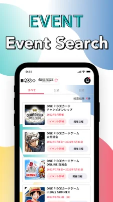 This app is designed to support tournament participation for various games. In order to use the app, you must have a BNID. The app offers a variety of functions to assist with tournament participation, including official tournament and store searches, card and deck building, and registration for participation. On the day of the tournament, users can check-in using location information or a 2D code, and receive push notifications for matchups. After the tournament, users can report their results and check their match history.