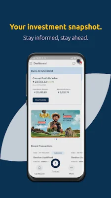 The app also offers seamless transactions, allowing users to buy, redeem, switch, or set up a SIP (Systematic Investment Plan) with ease. It also provides a secure and convenient login process, using MPIN and biometrics for added security. Users can also track their portfolio, scheme performance, and SIP returns in real-time, making it easier to monitor their investments.