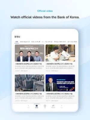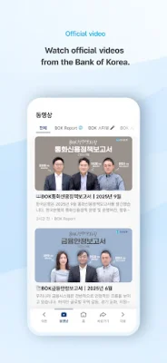 In addition, the app also provides access to the official YouTube channel of the Bank of Korea, where users can watch videos and receive notifications for new uploads. This feature allows users to easily stay connected with the central bank and its updates.
