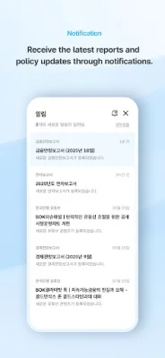 The Bank of Korea app offers a variety of key services to keep users informed and connected with the latest news and reports from the central bank. One of the main features is the ability to receive notifications for major reports, such as annual reports and monetary credit policy reports, and immediately access the original text. This allows users to stay up-to-date on important information and developments in the financial world.
