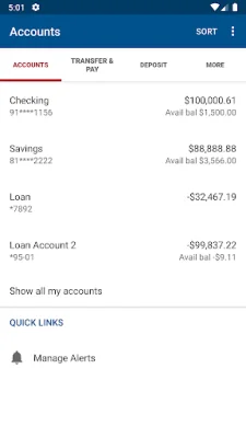 Manage Your Accounts is a convenient and user-friendly mobile application that allows you to easily keep track of your finances. With this app, you can check your account balances, view recent transactions (including check images), transfer money between accounts, and pay bills all in one place. This makes it easier for you to stay on top of your finances and manage your accounts efficiently.