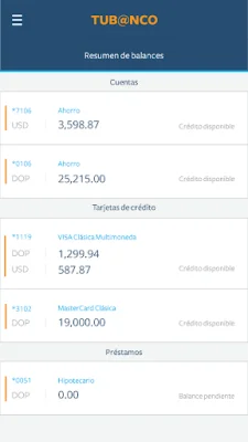 Entre las funciones disponibles en la aplicación, podrás consultar el balance de tus productos, realizar pagos, transferencias y recargas de celulares. También tendrás acceso a todas las vías de contacto con el banco y podrás buscar oficinas, cajeros y subagentes cercanos a tu ubicación.