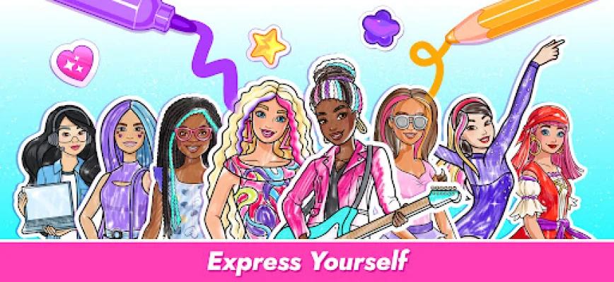 This application offers a wide variety of coloring pages featuring the popular character Barbie and her friends. Users can customize their Barbie doll's appearance by choosing skin tone, eye color, hairstyle, and makeup. They can also dress up Barbie with fashion pieces that they can color and style. The app also allows users to explore different themed scenes and place their creations in stunning settings. To bring their designs to life, users can use various art tools such as brushes, spray paint, and makeup. The app also offers fun activities like preparing food and creating bath bombs. It aims to promote creativity, imagination, and self-expression in children.