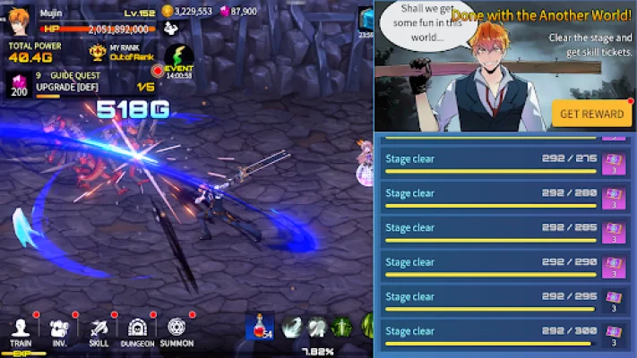 Growth is key in this idle RPG game. You can collect equipment, skins, and skills, and strategically enhance your stats to survive and thrive as a top-ranked player. Rankings are updated weekly, so you must consistently grow to prove yourself. And the best part? Your character continues to grow even while you're idle, making it the most efficient AFK and idle RPG game. So, enjoy the game to the fullest and take a break when needed.