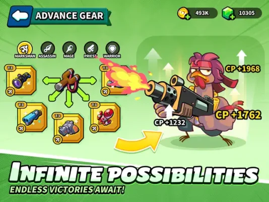 INFINITE POSSIBILITIES is a unique feature of DEFEND THE COOP, as it offers players a wide range of possibilities and options to enhance their gameplay experience. By collecting magical feathers and unlocking exclusive skills and random equipment, players can develop their own unique strategies and playstyles. Each class in the game also has a unique advancement path, which can be paired with special equipment to further customize and personalize the gameplay experience. This feature adds depth and variety to the game, making it a truly immersive and dynamic experience for players.