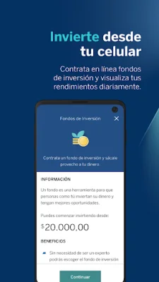 The app also allows you to view the CVV of your debit and credit cards for online purchases, as well as check for pre-approved credit options. You can also send and receive money internationally, and request additional resources for your current consumer credit, such as a credit line increase, CDT, payroll advance, and investment funds, all without having to go to a physical branch.