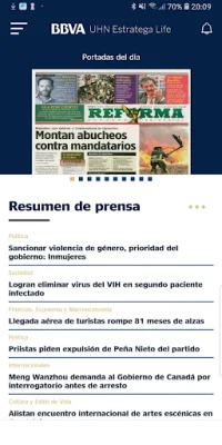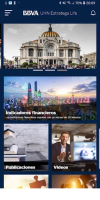 La aplicación consta de seis bloques que ofrecen diferentes servicios y beneficios a los clientes del banco. El primer bloque se enfoca en el área financiera, donde los clientes pueden acceder a información actualizada sobre mercados y divisas con un retraso de 20 minutos. El segundo bloque ofrece un resumen de noticias nacionales e internacionales, que el cliente puede personalizar según sus preferencias.