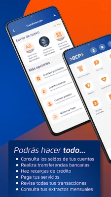 Con Banca Móvil BCP, tendrás acceso a una amplia gama de servicios financieros desde la comodidad de tu teléfono móvil. Podrás consultar tus saldos y movimientos en cualquier momento, realizar pagos y cobros de manera sencilla a través de códigos QR, y realizar transferencias nacionales e internacionales de forma rápida y segura. También podrás pagar tus servicios de manera ágil y proteger tu cuenta con un seguro de protección personal.