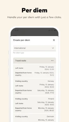 Our application also offers the convenience of automatically calculating the accounting of all expenses through simple choices. This feature is especially useful for representatives who often have to manage expenses on the go. Additionally, our solution allows for the management of both internal and foreign allowances, making it easier to keep track of expenses for employees who travel for work.