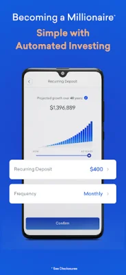 The app also features tools to help users visualize their long-term investing potential, as well as professionally selected ETFs for broad market diversification. The interface is designed to be simple and user-friendly, making it easy for individuals to invest without having to navigate complex dashboards.