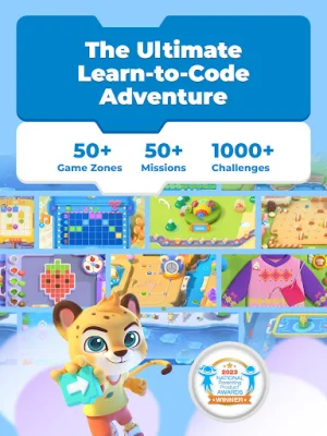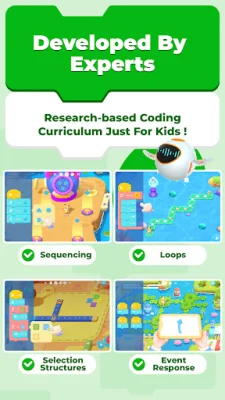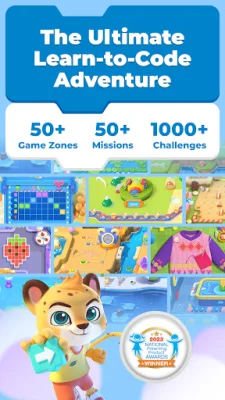 The missions on Planet Algorith are full of unique games and puzzles that push kids' coding skills to the limit. They will have to use coding tiles to give commands to game characters, program buttons, swipe controls, and tilt controls on their device, and learn pattern recognition and sequencing skills. The app also teaches kids how to create programs with loops and selection structures, as well as multi-object programs. Additionally, there are simple questions about coding to test their understanding.