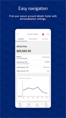 The app also offers a personalized experience, with features such as My To-Do List and Alert messages to keep you up to date. You can also choose to have your Merrill investment account balances and Bank of America account balances displayed alongside your benefit plan accounts. Additionally, you can opt for online delivery of statements and confirmations for added convenience.