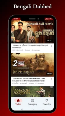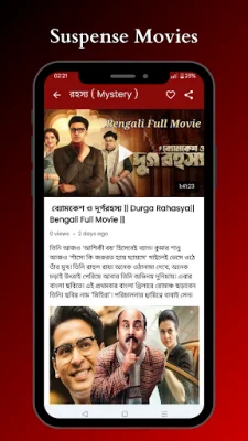 This application is a streaming service that offers a wide selection of Bengali movies, including all-time favorites and the latest hits in Bengali cinema. It also features popular South Indian films dubbed in Bengali, providing a fresh perspective on familiar stories. Users can easily browse through different genres such as action, romance, horror, mystery, and comedy to find their desired movie. The streaming quality is in high definition, ensuring a crisp and smooth viewing experience. The library is regularly updated, so users can stay current with the latest Bengali movies. The app has a user-friendly interface, making it effortless to find and watch favorite Bengali movies. It offers a comprehensive selection of Bengali movies and dubbed films, covering a diverse range of genres. Whether users are in the mood for action, romance, thrillers, mysteries, or comedy, this app has something for everyone. The categories and search features make it easy to navigate and find desired movies. The library is constantly expanding, so users will always have something new to watch. This app is the ultimate destination for Bengali movie lovers. It offers unlimited streaming, allowing users to watch as many Bengali movies as they want, at any time. Users can also save their top Bengali movies in a favorites list for easy access. With the ever-growing library, users will never run out of Bengali movies to enjoy. They can also become part of a lively community of Bengali movie fans and access exclusive content only available on this app. Users can also read and share their thoughts on Bengali movies through reviews and ratings. The app provides a high-quality viewing experience with superior audio and visual quality. It also offers personalized recommendations for Bengali movies based on the user's preferences. The streaming is secure, ensuring a safe and enjoyable experience for users. It is important to note that the content on this app is hosted by YouTube and is available in the public domain. The app does not upload any videos to YouTube and does not show any violent content. It simply provides an organized way to select and watch Bengali movies. In case of any issues, users can contact the support team and share their ideas for improvement. The app encourages original and SEO-oriented ideas from its users. Overall, this app offers the best experience for Bengali movie enthusiasts, with its extensive library, user-friendly interface, and high-quality streaming.