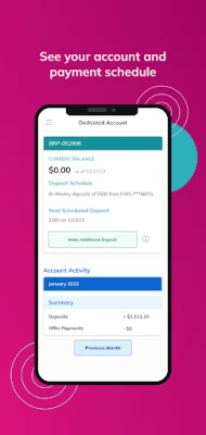 In addition to viewing their enrolled debts, users can also review their trust account history. This feature provides a detailed record of all transactions made through the app, giving users a transparent view of their financial activity. This can be helpful for budgeting and tracking expenses, as well as ensuring that all payments are accurately recorded.