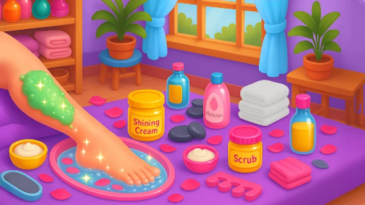 Nail Salon: Manicure and Pedicure Spa allows users to complete their look with trendy nail art. They can clean, cut, and file nails, apply fake nails, and choose stylish nail polish colors. This feature also includes nail ASMR, manicure and pedicure spa gameplay, making it one of the most relaxing teen girl games.