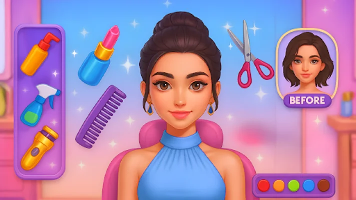 Hair Salon Stylist: Cut, Color, and Style is a feature that allows users to wash, dry, cut, and dye hair like a professional stylist. They can experiment with different hairstyles and hair colors to match every outfit. By combining makeup and hair salon games, users can achieve a full fashion makeover.