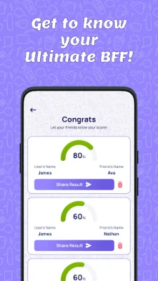 Wondering how your friendship measures up? Well, it's as easy as a cakewalk. Simply enter your name and your friend's name into the app, and voila, the friendship compatibility test begins!