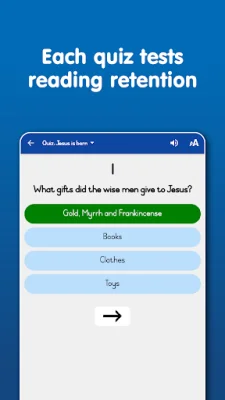 The app is designed to be child-friendly and engaging, with its use of colorful images and interactive quizzes. This not only makes learning about these stories more fun, but it also helps children to retain the information better.