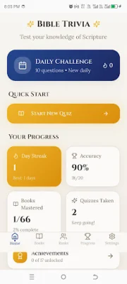 This application is designed to test your knowledge of the Bible through interactive trivia questions. It covers both the Old Testament and New Testament, including stories, characters, teachings, and key moments from Scripture. Whether you have been a lifelong believer or are just starting your faith journey, this Christian trivia game is a great way to make learning the Word both meaningful and enjoyable.