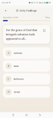 The app features daily Bible trivia challenges to keep you engaged and continuously learning. With hundreds of quiz questions from both Testaments, you will have plenty of opportunities to test your knowledge and expand your understanding of the Bible. The multiple-choice format makes gameplay fast and easy, allowing you to focus on the content and not get bogged down by complicated controls.
