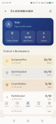 As you play, you can track your progress, scores, and personal bests. This feature allows you to see how much you have improved and motivates you to keep playing and learning. The app also has simple controls and a clean design, making it perfect for casual play. And with family-friendly Christian content suitable for all ages, this trivia game is a great way to spend quality time with loved ones.